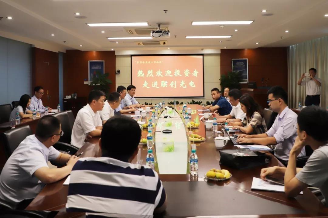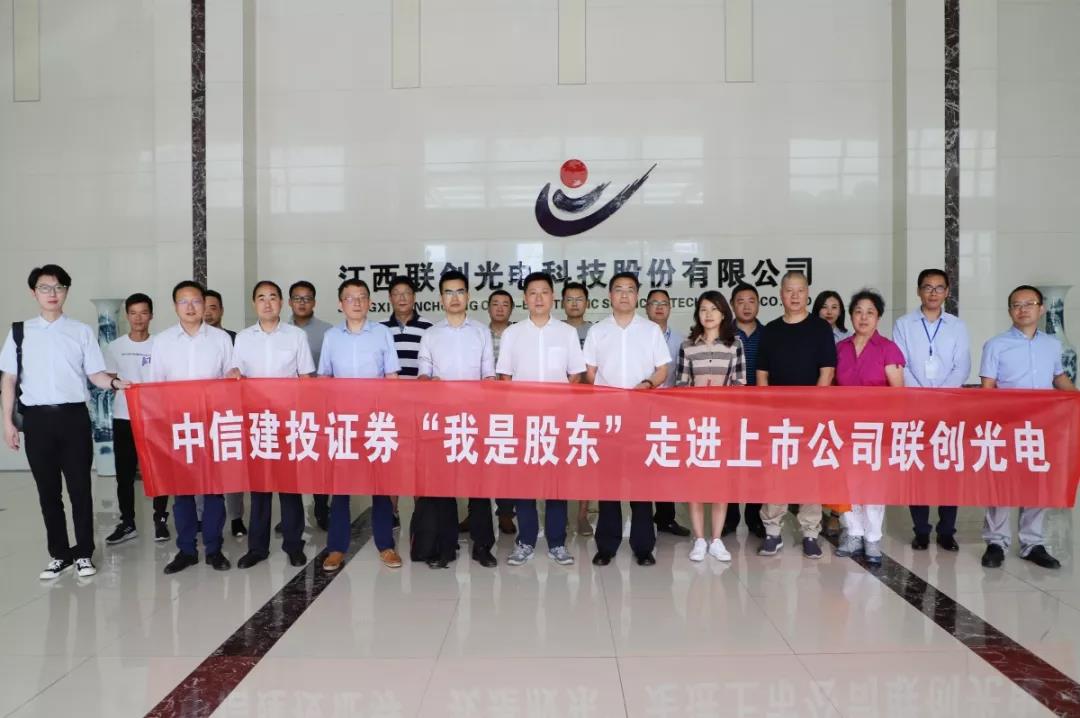 8月30日上午,中信建投證券股份有限公司組織的“投資者走進(jìn)上市公司”活動(dòng)在子公司聯(lián)創(chuàng)光電舉辦。股份公司董事長(zhǎng)等領(lǐng)導(dǎo)熱情地接待了中信建投江西分公司副總經(jīng)理吳雄及來訪的二十多位投資者。