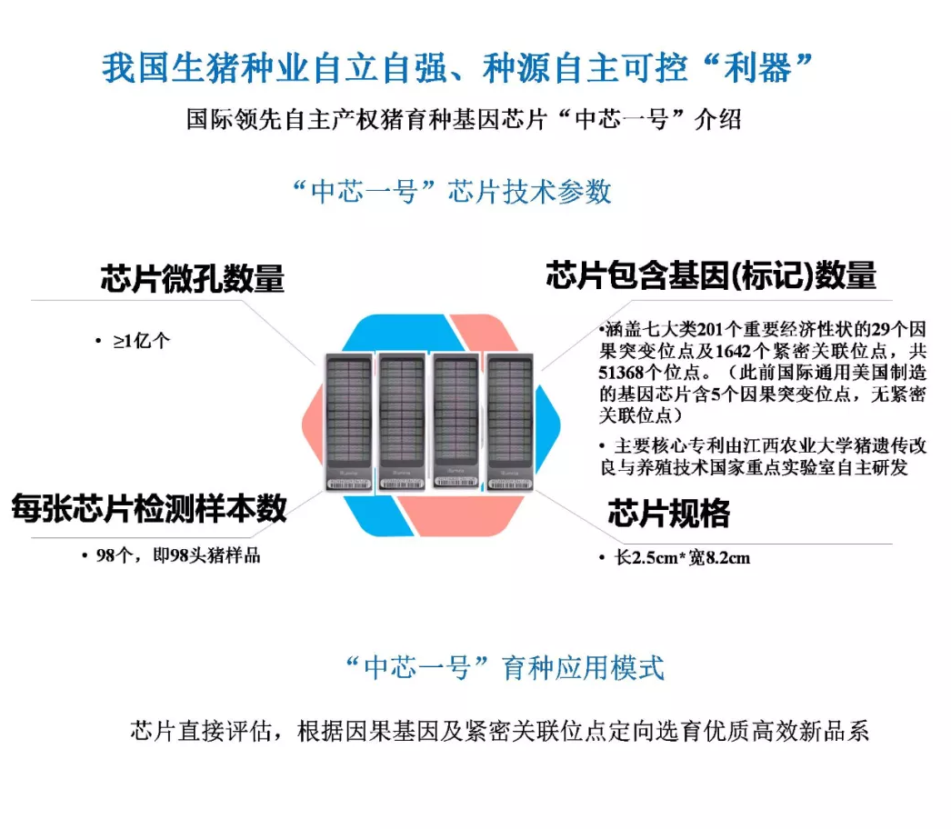 生豬種業(yè)作為產(chǎn)業(yè)鏈“芯片”,是我國種業(yè)主要卡脖子產(chǎn)品。基因芯片育種因其準確性高而成為國際主流技術(shù)。江西農(nóng)業(yè)大學研究人員專心致志30多年,研發(fā)了育種性能全面超過美國的家豬新品種培育基因芯片——“中芯一號”,成為國際領先水平的基因育種主導技術(shù)。