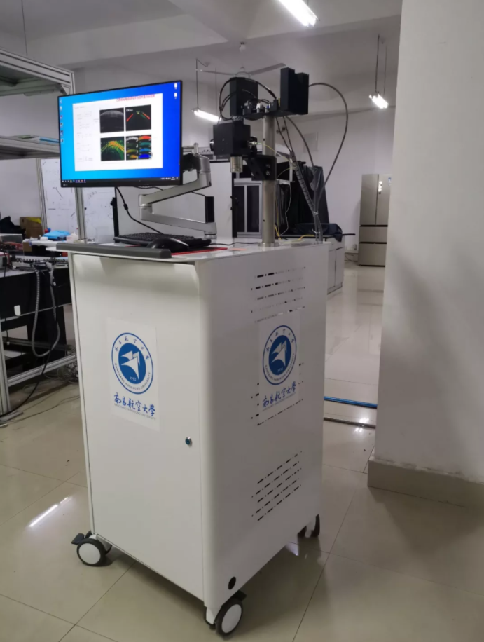 南昌航空大學研究人員依托國家科技部重點研發(fā)項目“基于布里淵散射及光學相干層析技術(shù)的眼前節(jié)彈性成像檢測系統(tǒng)研制”項目,成功研制出一種針對眼睛三維結(jié)構(gòu)及彈性模量快速、高分辨、無創(chuàng)檢測技術(shù)的彈性成像系統(tǒng),可實現(xiàn)對生物組織三維層析結(jié)構(gòu)、三維彈性模量、微血管血流速度及流量的實時檢測及VR再現(xiàn),不僅可用于現(xiàn)場原位在體檢測與診斷,也可以用于遠程線上診斷及診療技術(shù)培訓,填補了我國在該領域的技術(shù)空白,有望替代相關進口高端醫(yī)療診斷檢測設備,將大幅提高我國對眼科疾病診治和預防能力。